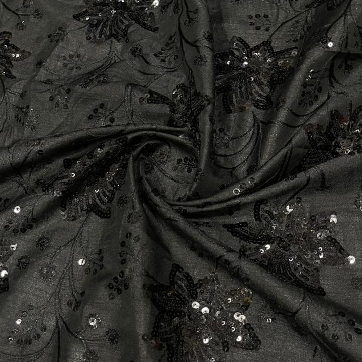 🖤 Black Sequin Embroidered Fabric 🖤