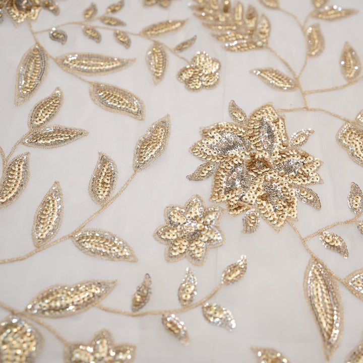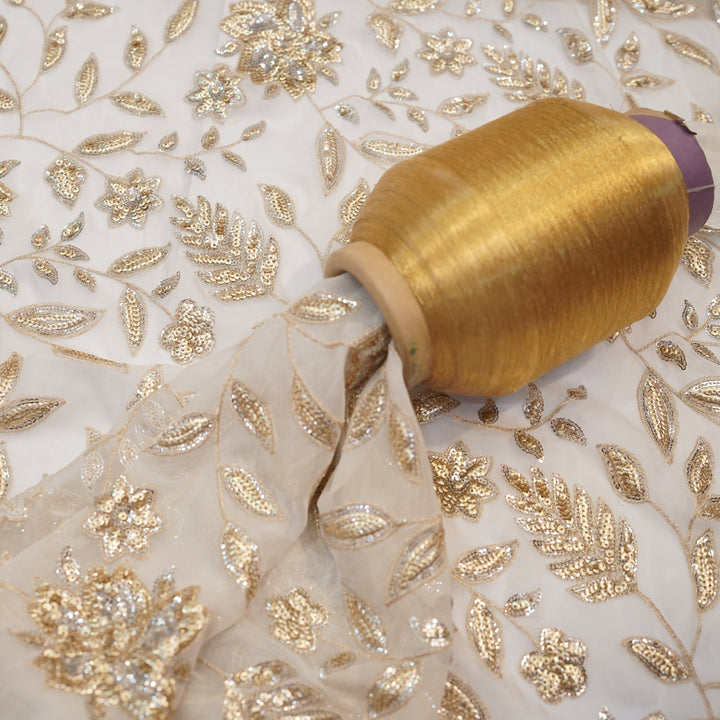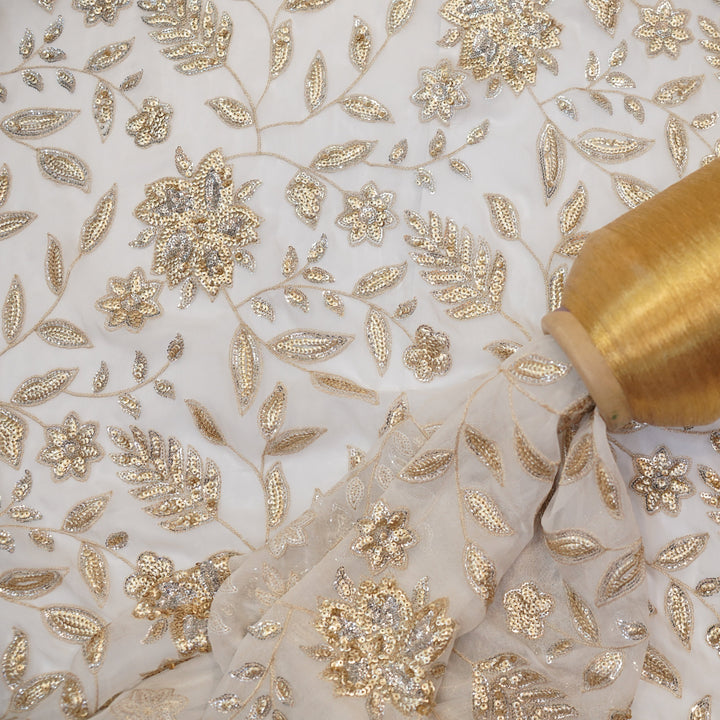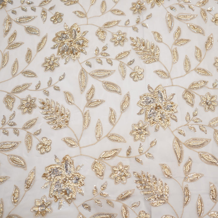 ulge in timeless elegance with this breathtaking embroidered chiffon suit, designed to make you shine on every occasion. Crafted on premium chiffon fabric, this ensemble features intricate golden and silver sequin embroidery, adding a touch of regal charm. The delicate detailing on the dupatta complements the outfit beautifully, while the pure silk trouser enhances the luxurious feel.